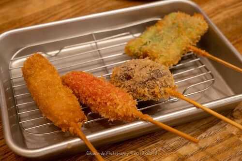 串カツ(ウィンナー・豚バラ・アスパラ・しいたけ) 歳をとり、立って飲むのが辛くなって来ました。サクッと飲んでサクッと帰るのも好きなので、立ち飲みがベターなんですが、本を読みながらゆっくり飲みたくなってきました。しかし、座るとどうしてもサクッ…