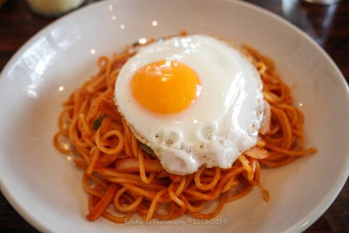 洋食屋さんのナポリタン 目玉焼きのせ 千葉県習志野市津田沼に、もうすぐ創業100年を迎える洋食屋さんがあります。 この場所で100年と言う訳ではありませんが、前進から数えて今年で96年目だそうです。店内のレジ横に年数が掲載してありました。(写真を失念…