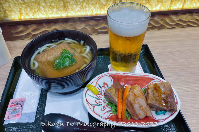 関西の甘い揚げが美味しい。このお揚げがが薄色の出汁を吸って実に美味しい。汁に合います。そして、ビールと角煮のセットです。仕事疲れの一人打ち上げにはピッタリです。ビールとお出汁が体に染み入ります。最高です。