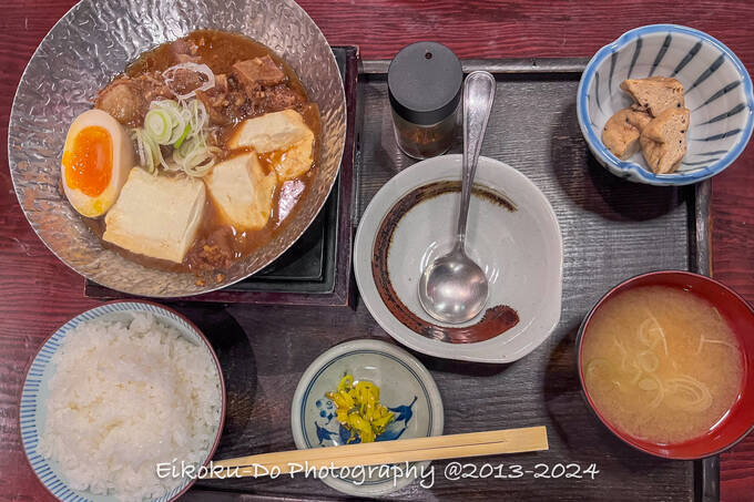 まずは家族は「仙台味噌仕込みの牛すじ煮込み定食」です。美味しそうなネーミングに誘われて注文しています。家人曰く、かなり美味しいそうです。お茶碗と比べていただくと、結構なボリューム感です。