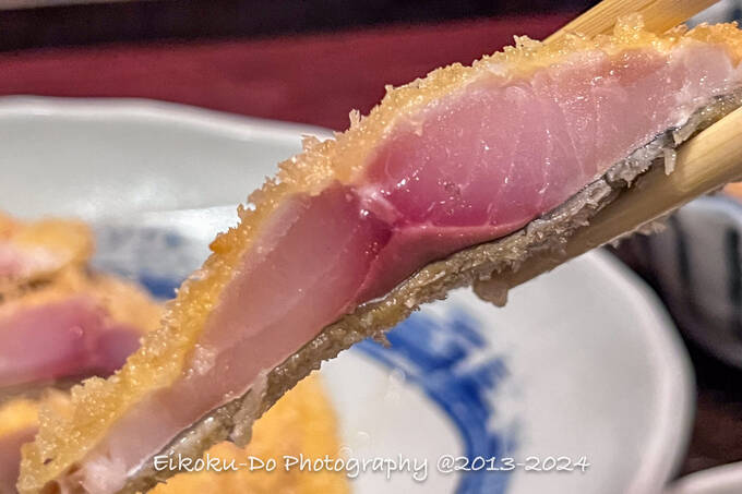 私は「限定10食 アジのレアフライ定食 わさび塩とタルタルソース付き」です。仙台のアジフライと言えばレアフライです。夜の居酒屋メニューですが、この半生のレアフライをランチで食べられるなんて最高です。肉厚のアジフライを。外はサクッとして、中は生のジューシーさが味わえます。このお店のアジフライには、フライの衣が薄目で良いですね。全部美味しいですよ。