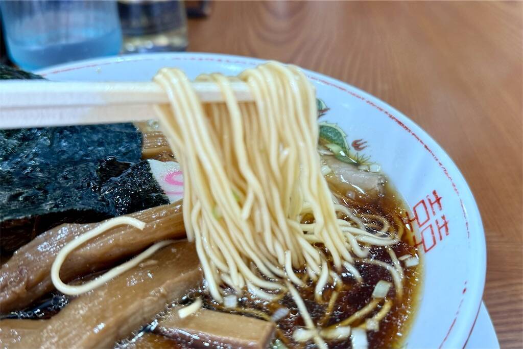 まずはスープを一口。琥珀色に輝くスープは、鶏ガラや豚骨の動物系をベースに、煮干しや節系の魚介出汁をバランスよく合わせた、あっさりとしつつもコク深い味わい。「昔ながらの中華そば」を極限まで洗練させたような、体に染み渡る優しさがあります。 合わせる麺は、白っぽい中細の縮れ麺。つるつるとした喉越しが良く、スープをしっかりと持ち上げてくれます。